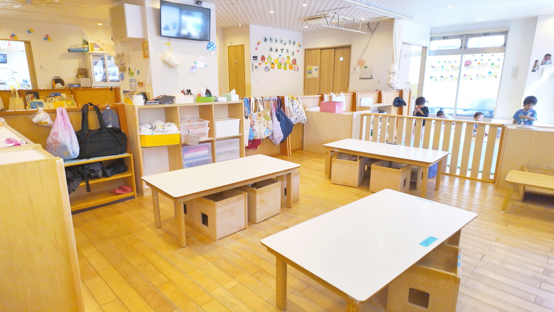 壁のない開放感のある保育室